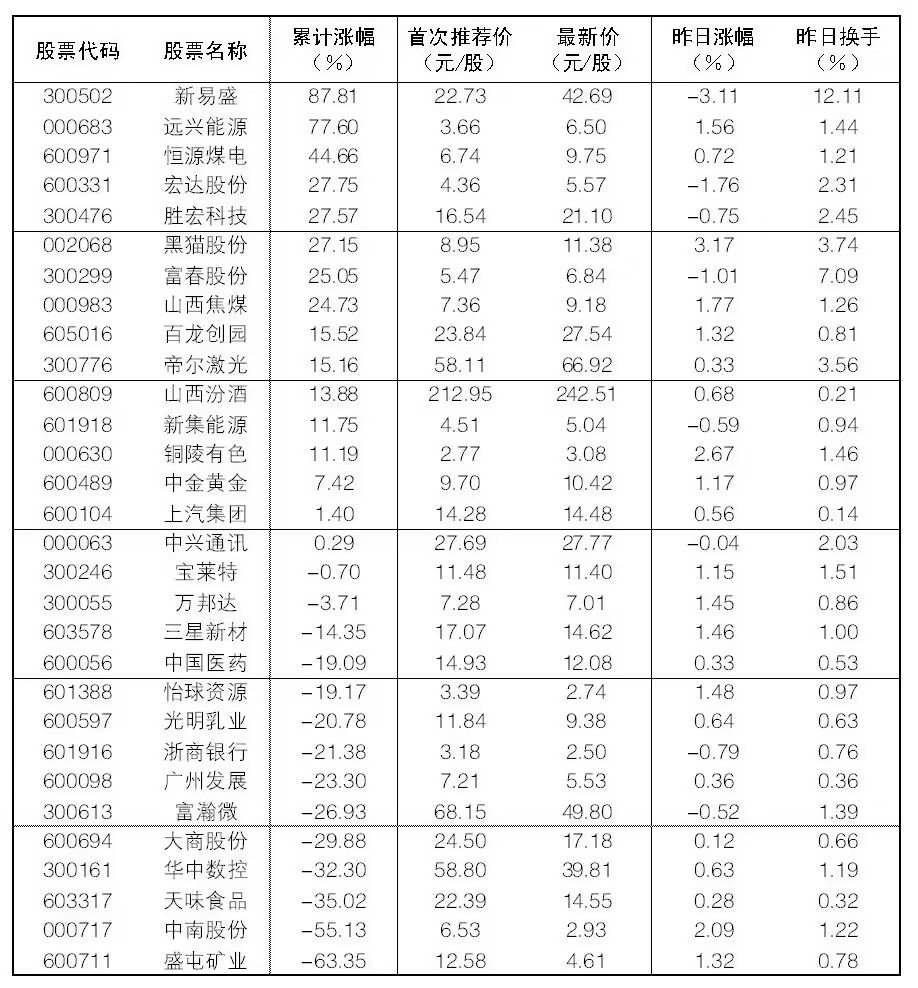 30成份股15日漲幅前五位的是黑貓股份、銅陵有色、中南股份、山西焦煤、遠(yuǎn)興能源,漲幅分別為3.17%、2.67%、2.09%、1.77%、1.56%;跌幅方面,新易盛、宏達(dá)股份、富春股份、浙商銀行跌幅居前。