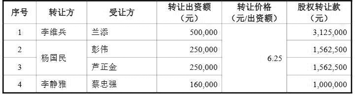 2019年12月16日,公司作出股東會(huì)決議,同意李靜雅、凌昌森將其持有的公司全部股權(quán)、廖筱云將其持有的公司部分股權(quán)分別轉(zhuǎn)讓給張茜、蔡姝,其他股東放棄優(yōu)先購(gòu)買權(quán)。2019年12月10日至2019年12月16日,股權(quán)轉(zhuǎn)讓的各方分別簽訂了《股權(quán)轉(zhuǎn)讓協(xié)議》,轉(zhuǎn)讓價(jià)格為6.25元/出資額。