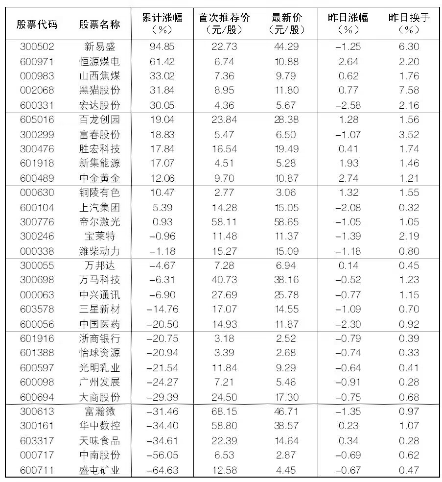 30成份股29日漲幅前五位的是中金黃金、恒源煤電、新集能源、銅陵有色、百龍創(chuàng)園,漲幅分別為2.74%、2.64%、1.93%、1.32%、1.28%;跌幅方面,宏達股份、中國醫(yī)藥、上汽集團、寶萊特跌幅居前。