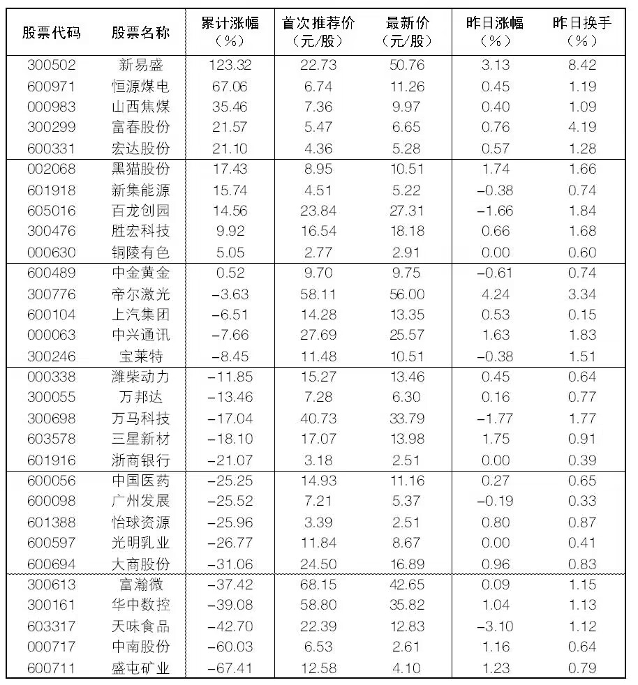 30成份股21日漲幅前五位的是帝爾激光、新易盛、三星新材、黑貓股份、中興通訊,漲幅分別為4.24%、3.13%、1.75%、1.74%、1.63%;跌幅方面,天味食品、萬馬科技、百龍創園、中金黃金跌幅居前。