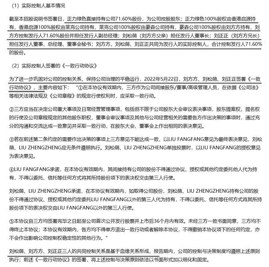 直到2022年5月22日,劉方方、劉松蔭、劉正正簽署《一致行動協議》,理由是“為了進一步鞏固對公司的控制關系、保持公司治理的平穩運行”。正佳股份于2022年6月披露首份招股書,也就意味著在首次披露招股書前一個月前,三人才簽署了《一致行動協議》。
