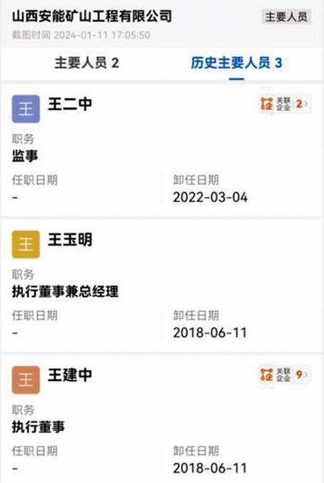 圖三:企查查關于安能礦山歷史主要人員截圖
