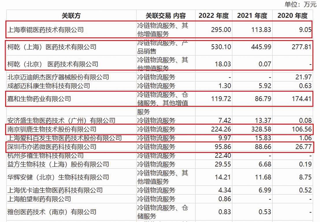 柯乾醫藥成為參股公司的前后,也與上海生生存在交易。招股書顯示,2020年至2022年,上海生生向柯乾醫藥提供冷鏈物流服務、產品銷售,交易金額依次為277.81萬元、445.99萬元、530.10萬元。