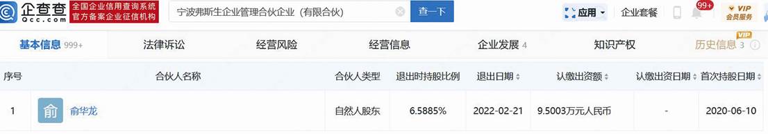 值得一提的是,從上海生生員工持股平臺寧波弗斯生企業管理合伙企業(有限合伙)歷史合伙人來看,直到2022年2月,俞華龍才退出合伙人(見圖六),若以上海生生披露的2020年1月離職時間為準,退出員工持股平臺時,俞華龍已離職近兩年。為何離職后兩年才退出員工持股平臺?俞華龍離職時間為何出現兩個版本?這同樣值得關注。