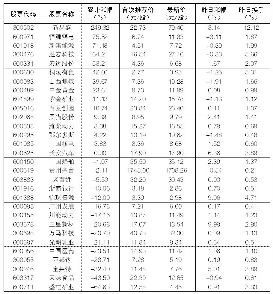 周二,大眾30選入長安汽車,調出兗礦能源。