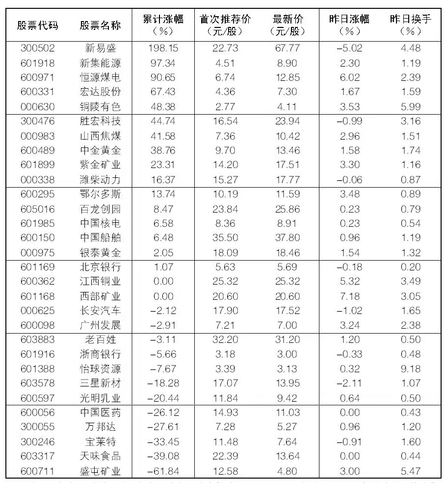 30成份股3日漲幅前五位的是恒源煤電、銅陵有色、鄂爾多斯、紫金礦業、廣州發展,漲幅分別為6.02%、3.53%、3.48%、3.30%、3.24%;跌幅方面,新易盛、萬馬科技、三星新材跌幅居前。