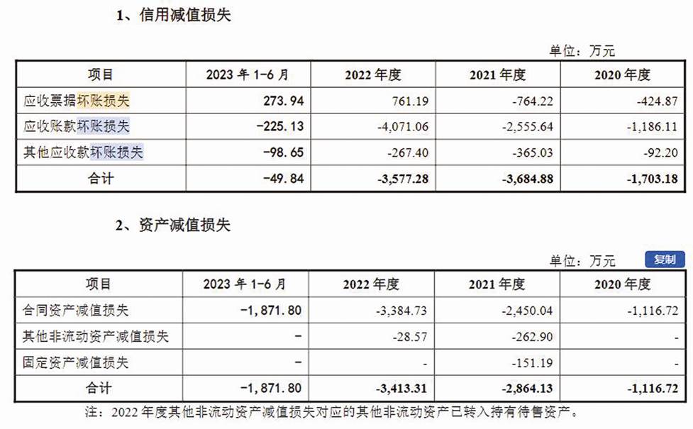 2020年至2022年及2023年上半年,洲宇設計信用減值損失金額分別為-1703.18萬元、-3684.88萬元、-3577.28萬元、-49.84萬元;資產減值損失金額分別為-1116.72萬元、-2864.13萬元、-3413.31萬元、-1871.80萬元(見圖一)。可以看出,洲宇設計信用減值損失及資產減值損失對凈利潤影響不斷增大。