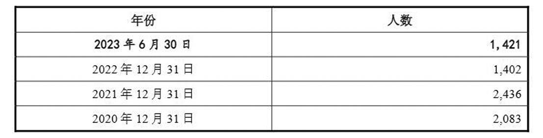 招股書顯示,洲宇設計2022年大幅減員,員工人數由2021年末的2436人大幅縮減至1402人,截至2023年6月末,員工人數為1421人,而在2020年公司員工人數穩定在2083人(見圖二)。