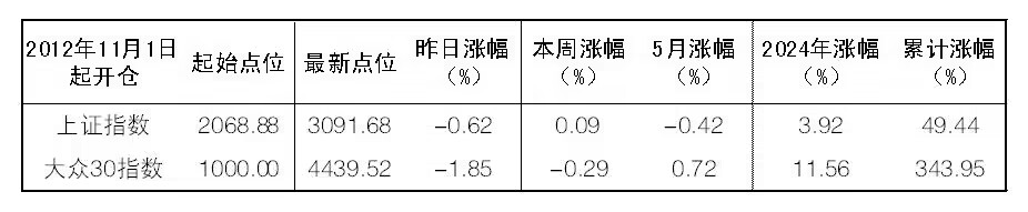 2024年5月30日“大眾30”成份股報告