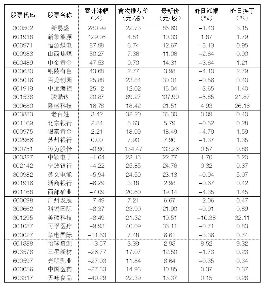 “大眾30”成份股每日報告