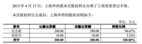 圖一:2013年4月上海漢興(曾用名“上海華西”)股權(quán)情況截圖