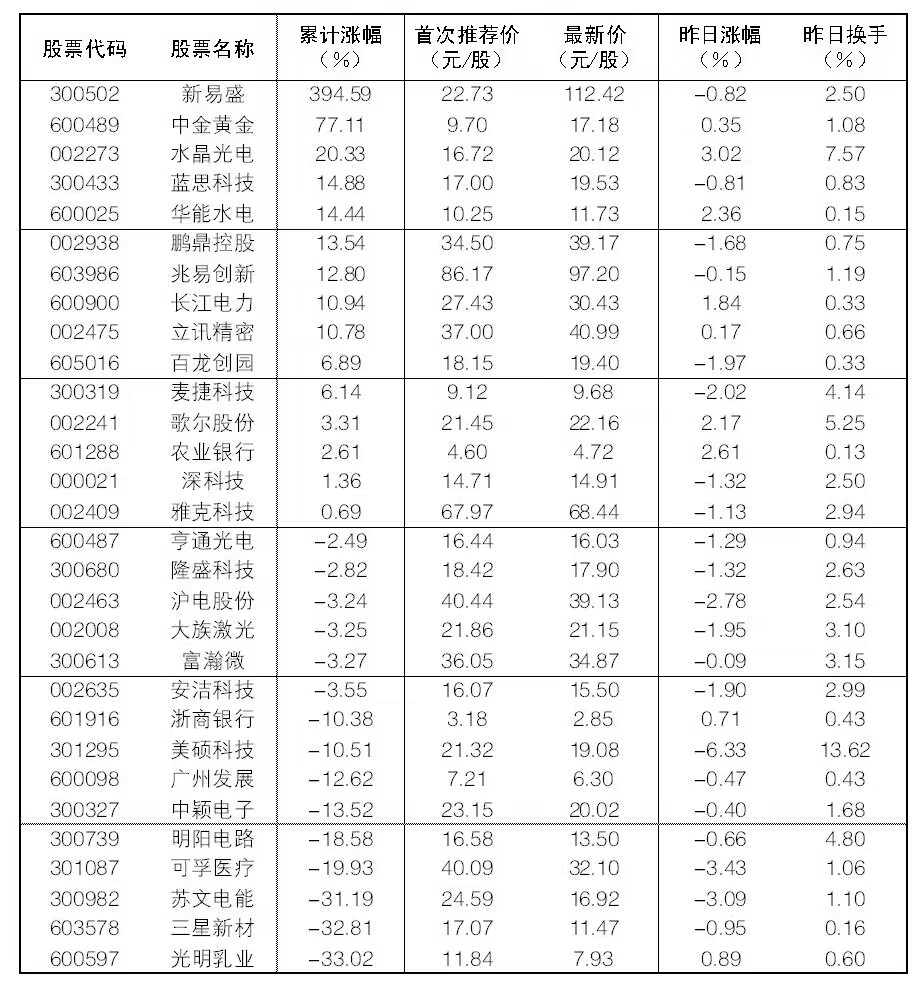 “大眾30”成份股每日報告