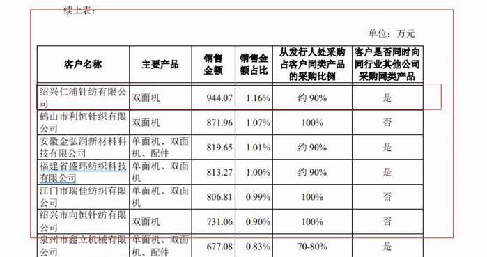 上述數據和佰源裝備披露公司報告期前二十大客戶時,公司2020—2022年向紹興仁浦銷售雙面機合計944.07萬元的數據相吻合。公司當時還披露,上述時間段,紹興仁浦向佰源裝備處的采購占其同類產品的采購比例為90%。