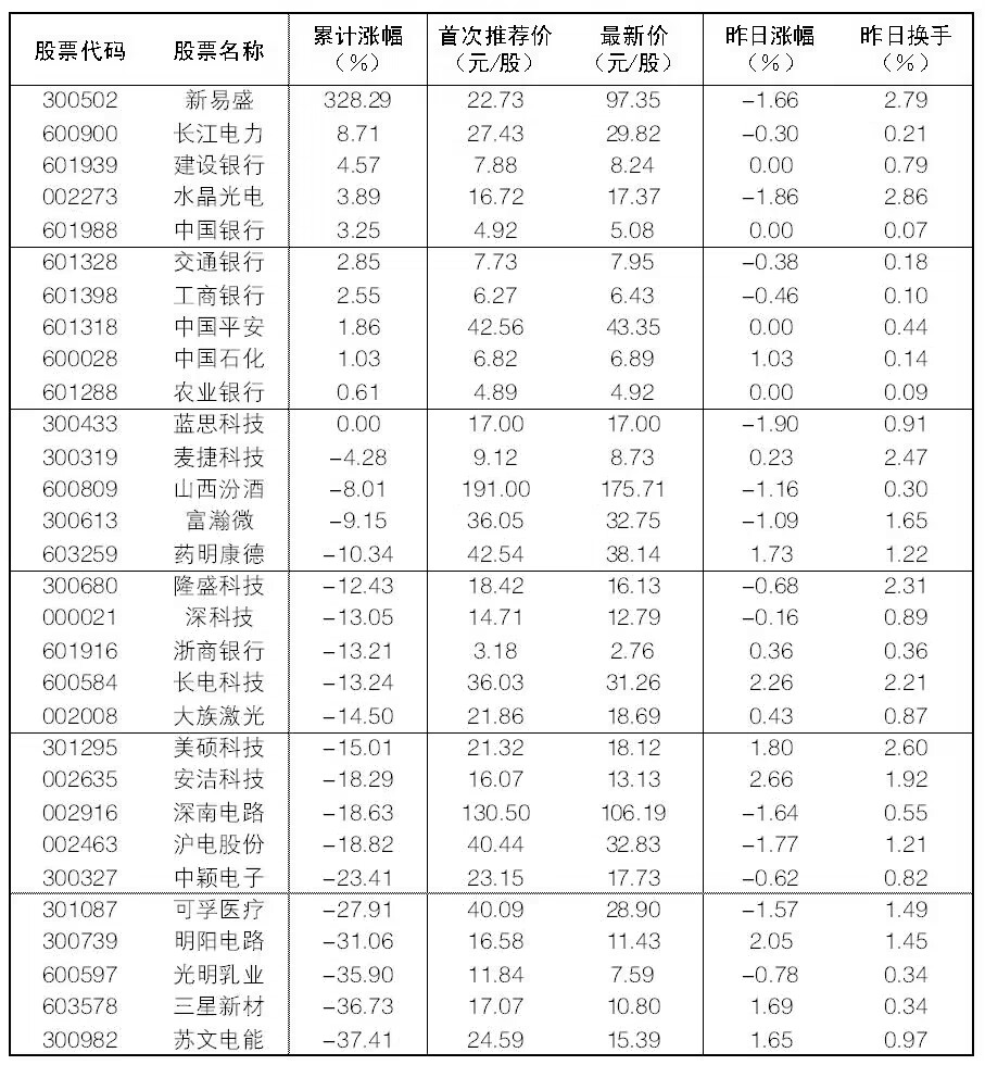 “大眾30”成份股每日報告