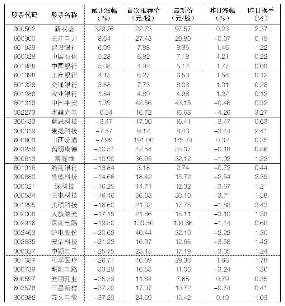 “大眾30”成份股每日報告