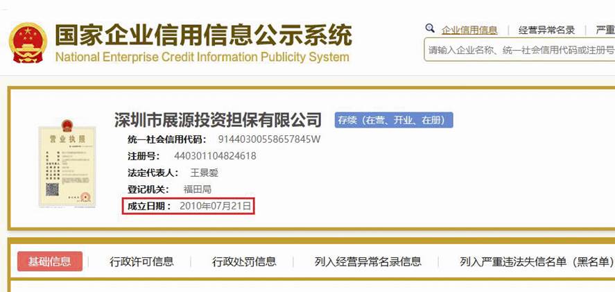 圖六:國(guó)家企信平臺(tái)深圳市展源投資擔(dān)保有限公司截圖