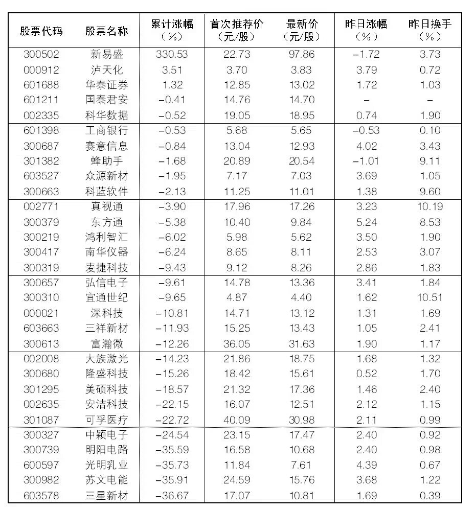 2024年9月19日“大眾30”成份股報告