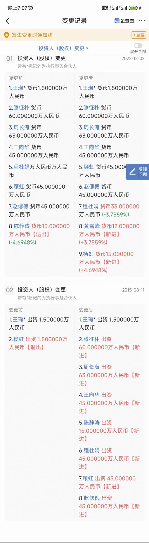 通過國家企信平臺和企查查查詢到的工商信息顯示,創壽投資于2022年12月2日發生投資人變更登記,出資額為15萬元(出資比例4.6948%)的陳靜濤退出,其于2015年8月11日登記為創壽投資合伙人(見圖四),而陳靜濤是2015年11月成立的深圳人人優活科技有限公司控股股東、法定代表人、執行董事、總經理,還是2017年9月成立的北京工作蟲網絡科技合伙企業(有限合伙)執行事務合伙人、出資95%,這些企業在2021年先后注銷。