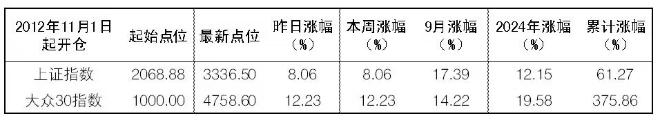 2024年9月30日“大眾30”成份股報告