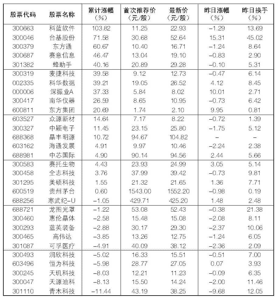 30成份股24日漲幅前五位的是臺基股份、深振業A、東方集團、科華數據、賽托生物,漲幅分別為15.31%、10.01%、9.95%、4.12%、3.05%;跌幅方面,青木科技、藍英裝備、可孚醫療、海通發展跌幅居前。