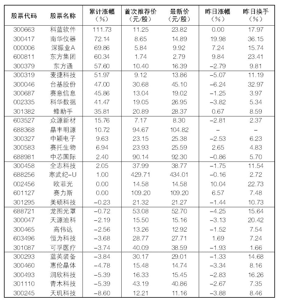 30成份股29日漲幅前五位的是南華儀器、東方集團(tuán)、深振業(yè)A、賽托生物、恒為科技,漲幅分別為19.98%、9.84%、7.24%、2.65%、1.69%;跌幅方面,臺基股份、麥捷科技、龍圖光罩跌幅居前。