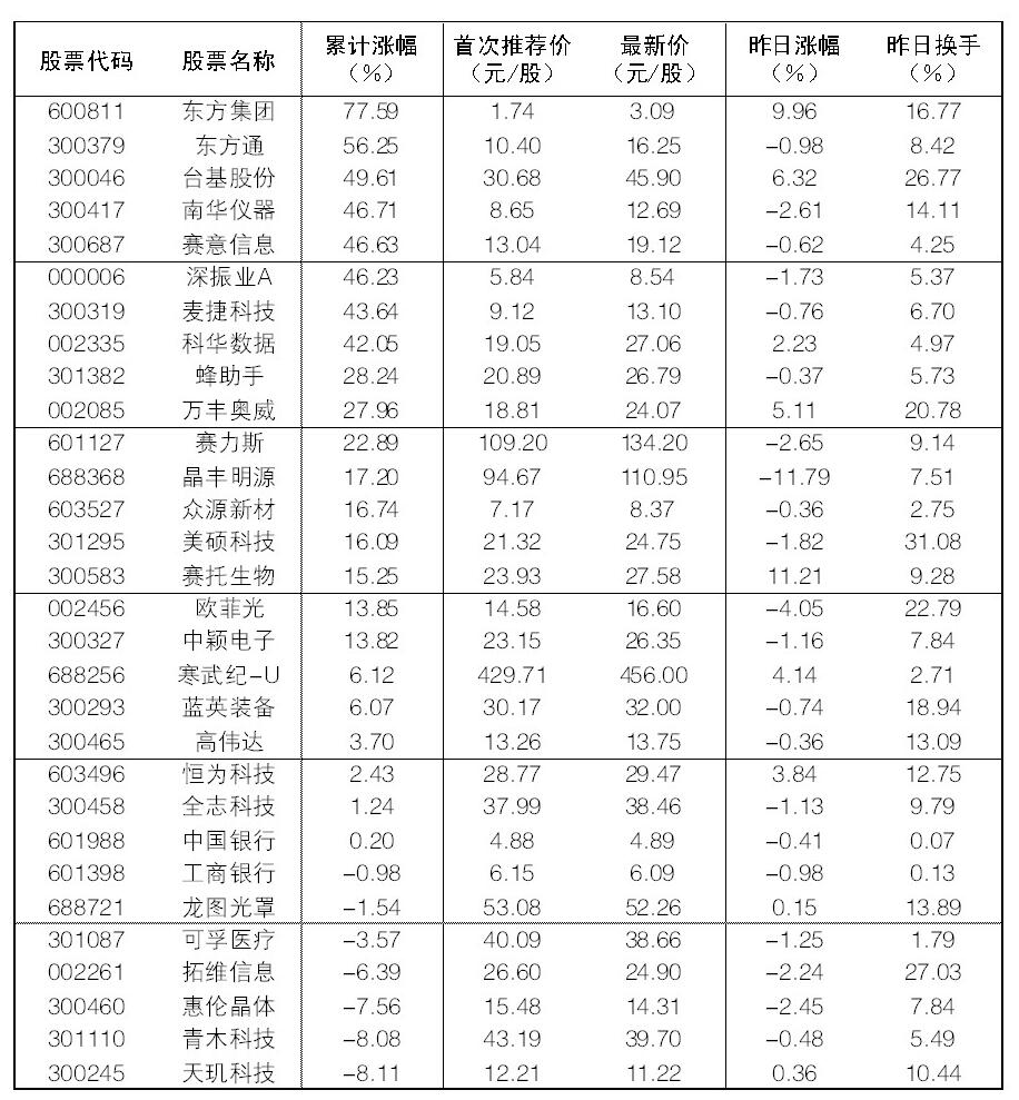 “大眾30”成份股每日報告