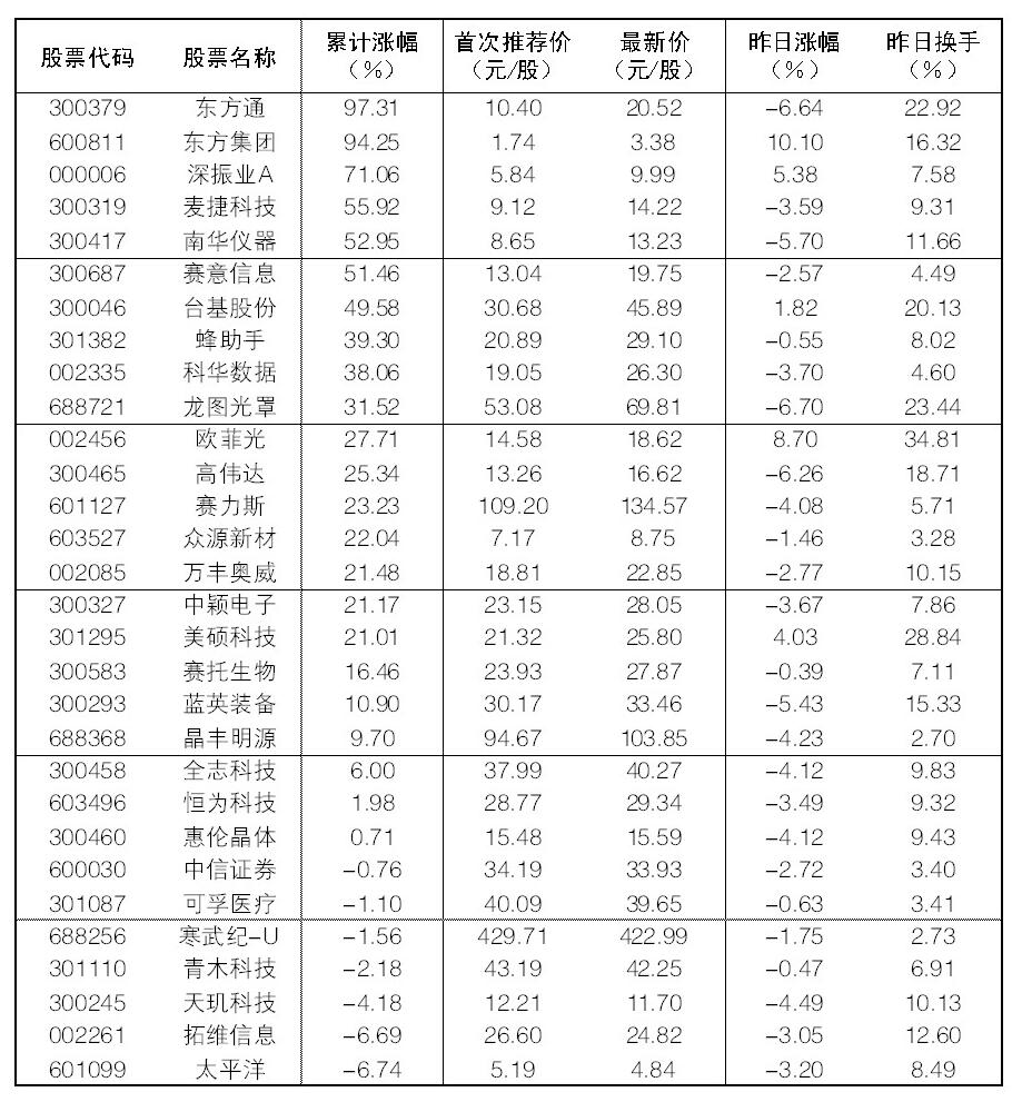 30成份股12日漲幅前五位的是東方集團、歐菲光、深振業A、美碩科技、臺基股份,漲幅分別為10.10%、8.70%、5.38%、4.03%、1.82%;跌幅方面,龍圖光罩、東方通、高偉達、南華儀器跌幅居前。