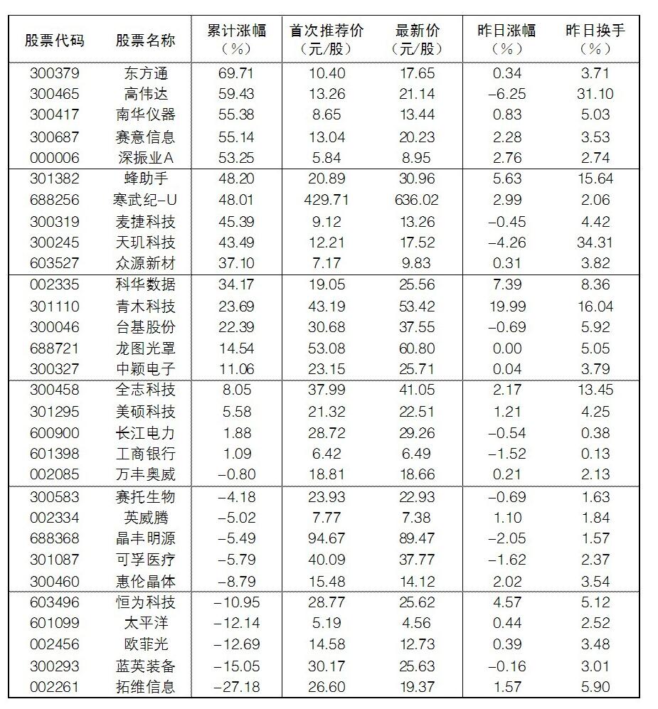 30成份股19日漲幅前五位的是青木科技、科華數(shù)據(jù)、蜂助手、恒為科技、寒武紀(jì)-U,漲幅分別為19.99%、7.39%、5.63%、4.57%、2.99%;跌幅方面,高偉達(dá)、天璣科技、晶豐明源、可孚醫(yī)療跌幅居前。