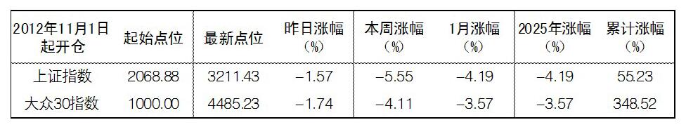 本報訊(記者 湯曉飛)本周,大盤呈現震蕩探底的走勢。特別是2025年開盤以后,滬深A股連續收出中陰線。本周,上證綜指下跌5.55%,深證成指下跌7.16%,大眾30指數下跌4.11%。