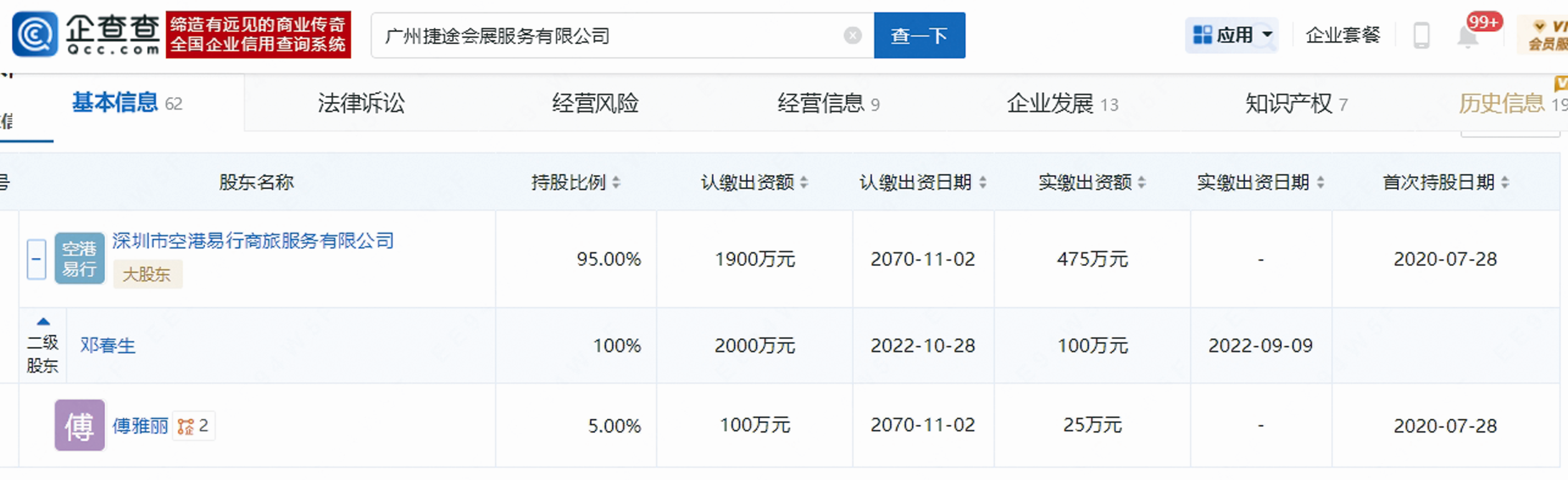 捷途會展工商登記股東