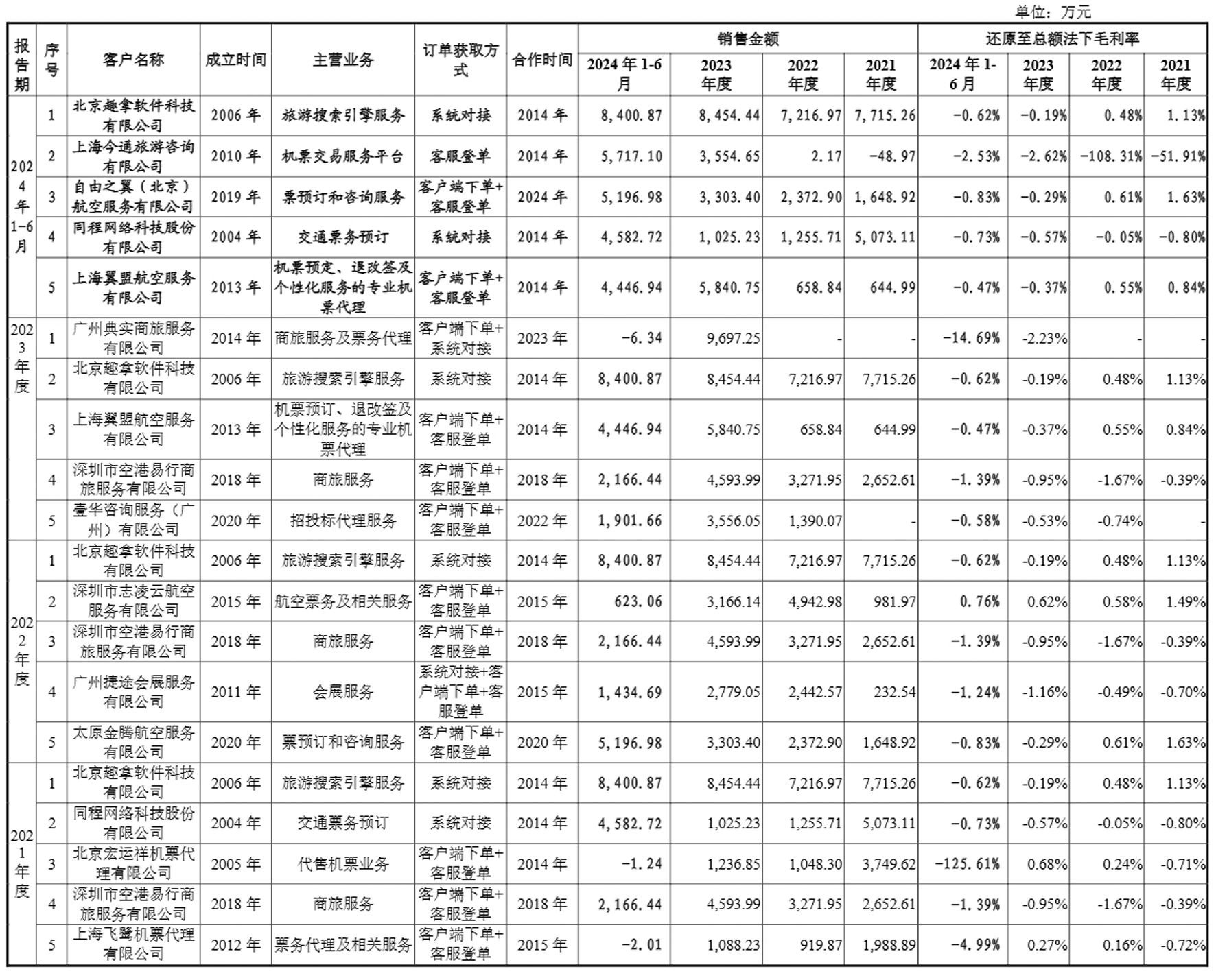 根據申報文件,報告期內,美亞科技部分票源來自向同行采購,公司存在與前員工控制、參股或任主要責任人員的主體存在銷售機票、采購機票、采購酒店等情況,其中銷售金額分別為5748.11萬元、7757.77萬元和12476.56萬元;采購金額分別為6117.40萬元、7868.70萬元和8164.85萬元。
