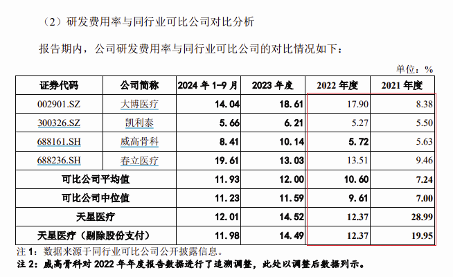 對此,天星醫療強調,2021年度公司實行股權激勵計劃,形成了較多股份支付費用,導致研發費用率相對較高。