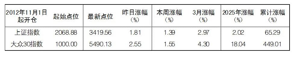本報訊(記者 湯曉飛)本周,大盤呈現震蕩盤升的走勢,上證綜指上漲1.39%,深證成指上漲1.24%,大眾30指數上漲1.55%。