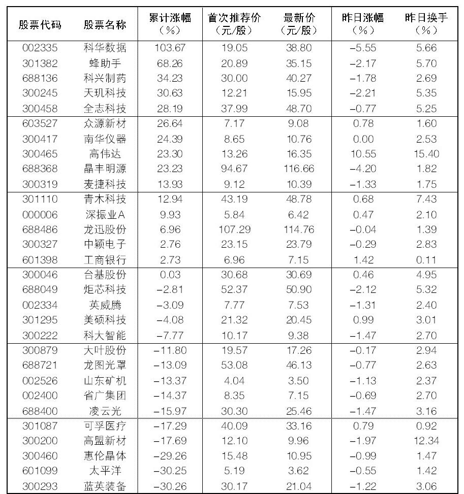30成份股22日漲幅前五位的分別是高偉達、工商銀行、美碩科技、可孚醫療、眾源新材,漲幅分別為10.55%、1.42%、0.99%、0.79%、0.78%;跌幅方面,科華數據、晶豐明源、天璣科技跌幅居前。
