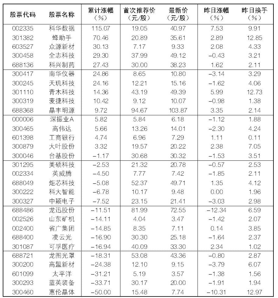 30成份股28日漲幅前五位的分別是科華數據、青木科技、晶豐明源、蜂助手、大葉股份,漲幅分別為7.53%、5.99%、3.35%、2.89%、2.38%;跌幅方面,龍迅股份、惠倫晶體、高盟新材、南華儀器跌幅居前。