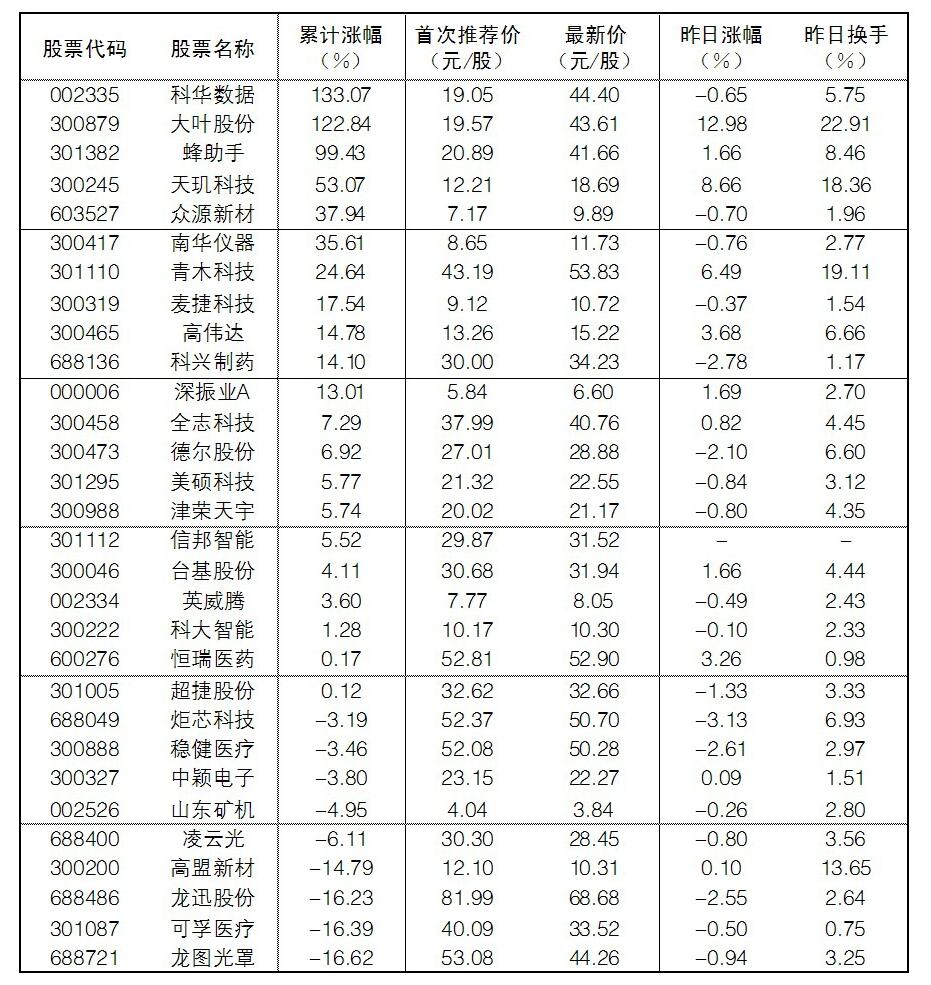 30成份股14日漲幅前五位的分別是大葉股份、天璣科技、青木科技、高偉達、恒瑞醫藥,漲幅分別為12.98%、8.66%、6.49%、3.68%、3.26%;跌幅方面,炬芯科技、科興制藥、穩健醫療、龍迅股份等跌幅居前。