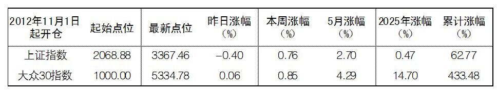 本報訊(記者 湯曉飛)本周,大盤呈現沖高回落的走勢,上證綜指上漲0.76%,深證成指上漲0.52%,大眾30指數上漲0.85%。