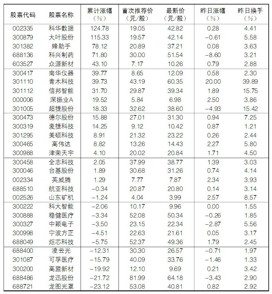 大眾30指數成份股中,11日漲幅前五位的是青木科技、山東礦機、深振業A、英威騰、高偉達,漲幅分別為20.00%、2.57%、2.50%、2.34%、2.27%;跌幅方面,科興制藥、超捷股份、龍迅股份等跌幅居前。