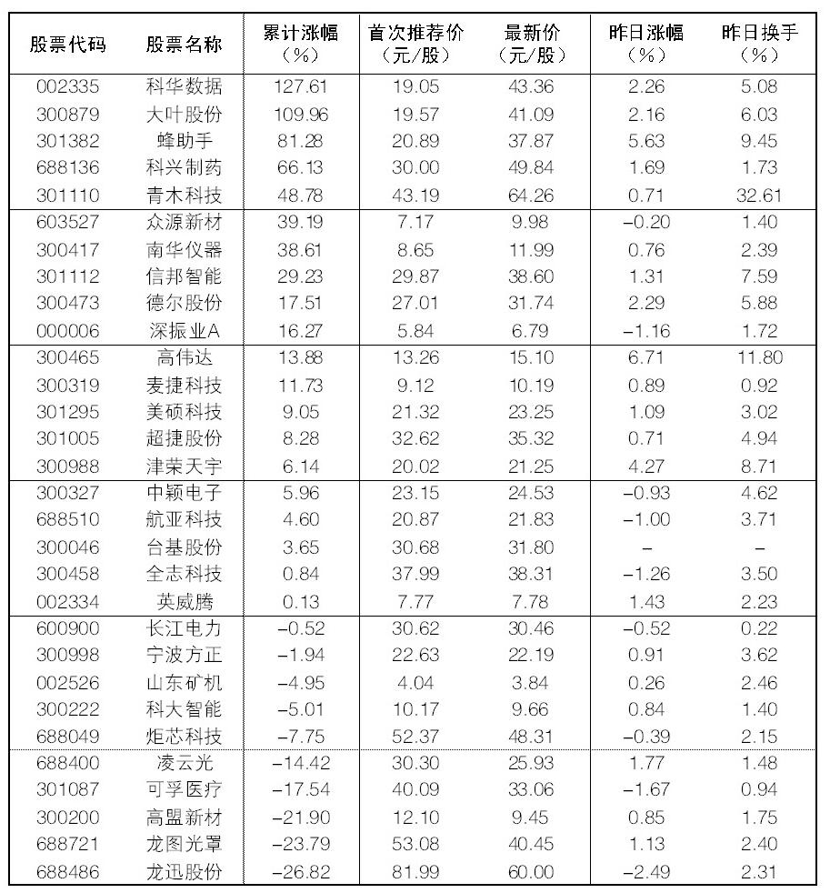 大眾30指數成份股中,16日漲幅前五位的分別是高偉達、蜂助手、津榮天宇、德爾股份、科華數據,漲幅分別為6.71%、5.63%、4.27%、2.29%、2.26%;跌幅方面,龍迅股份、可孚醫療、全志科技等跌幅居前。