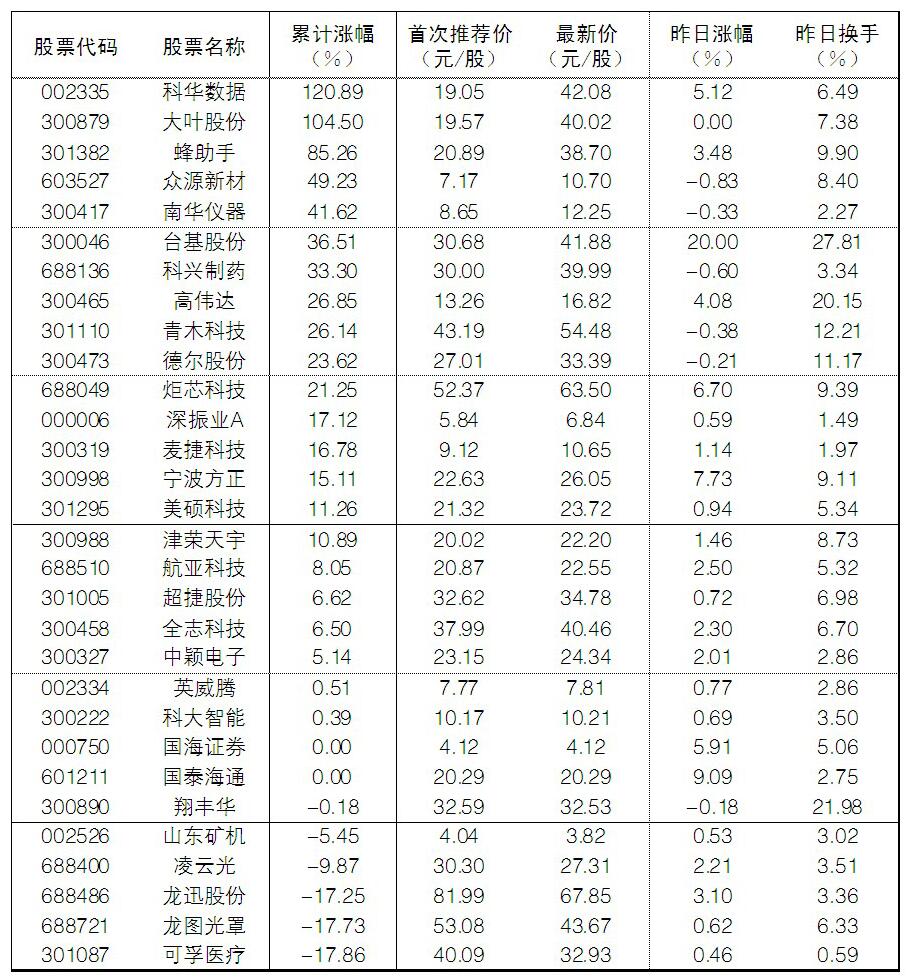 大眾30指數(shù)成份股中,25日漲幅前五位的分別是臺(tái)基股份、寧波方正、炬芯科技、科華數(shù)據(jù)、高偉達(dá),漲幅分別為20.00%、7.73%、6.70%、5.12%、4.08%;跌幅方面,眾源新材、科興制藥、青木科技等跌幅居前。