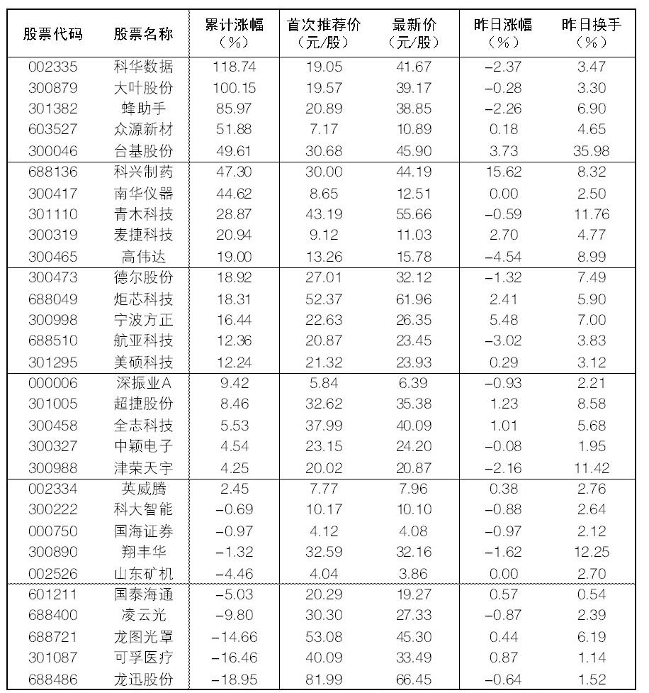 大眾30指數成份股中,1日漲幅前五位的分別是科興制藥、寧波方正、臺基股份、麥捷科技、炬芯科技,漲幅分別為15.62%、5.48%、3.73%、2.70%、2.41%;跌幅榜上,高偉達、航亞科技、科華數據等跌幅居前。