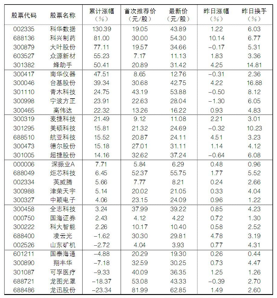 大眾30指數成份股中,17日漲幅前五位的分別是科興制藥、凌云光、航亞科技、蜂助手、臺基股份,漲幅分別為10.14%、4.78%、4.51%、4.25%、4.22%;跌幅榜上,寧波方正、超捷股份、青木科技等跌幅居前。