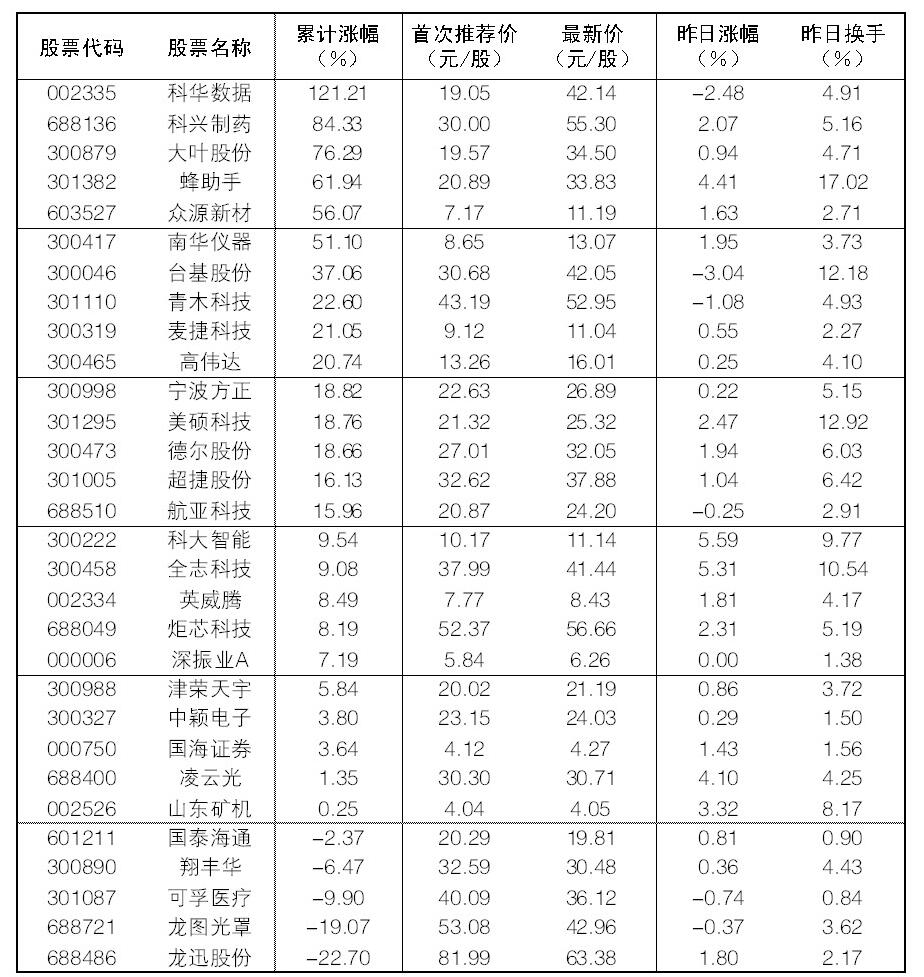 大眾30指數成份股中,21日漲幅前五位的是科大智能、全志科技、蜂助手、凌云光、山東礦機,漲幅分別為5.59%、5.31%、4.41%、4.10%、3.32%;跌幅方面,臺基股份、科華數據、青木科技等跌幅居前。