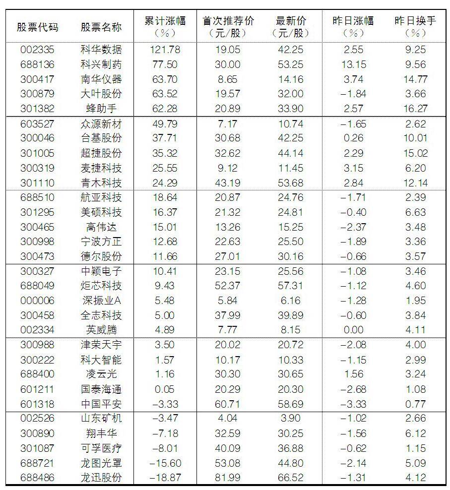 大眾30指數成份股中,31日漲幅前五位的分別是科興制藥、南華儀器、麥捷科技、青木科技、蜂助手,漲幅分別為13.15%、3.74%、3.15%、2.84%、2.57%;跌幅方面,中國平安、國泰海通、高偉達、龍圖光罩等跌幅居前。