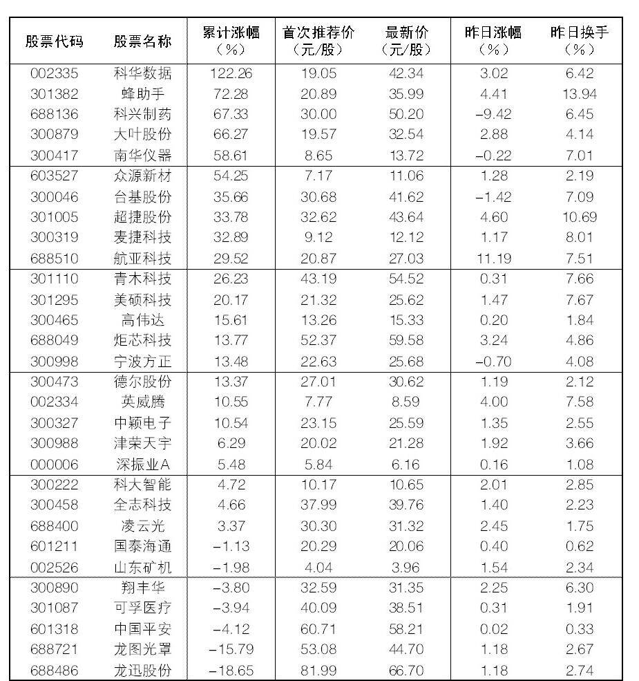 大眾30指數成份股中,4日漲幅前五位的是航亞科技、超捷股份、蜂助手、英威騰、炬芯科技,漲幅分別為11.19%、4.60%、4.41%、4.00%、3.24%;跌幅方面,科興制藥、臺基股份、寧波方正等跌幅居前。
