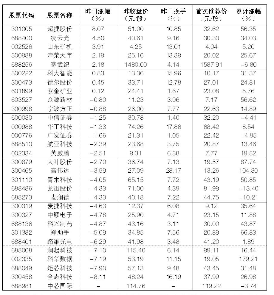 大眾30指數(shù)成份股中,2日漲幅前五位的分別是超捷股份、凌云光、山東礦機、津榮天宇、寒武紀(jì),漲幅分別為8.07%、4.50%、3.91%、2.19%、2.18%;跌幅榜上,全志科技、炬芯科技、科華數(shù)據(jù)、瀾起科技跌幅居前。
