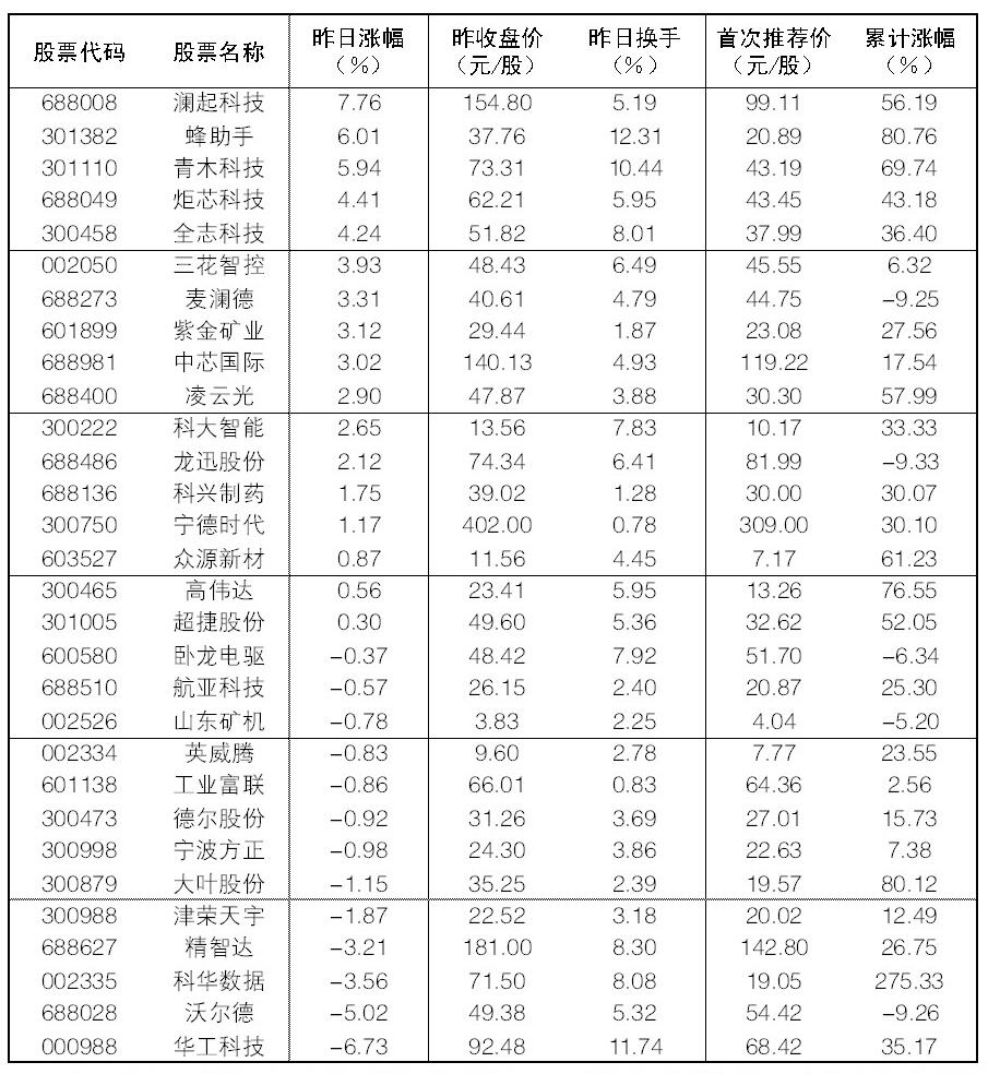 大眾30指數(shù)成份股中,30日漲幅前五位的分別是瀾起科技、蜂助手、青木科技、炬芯科技、全志科技,漲幅分別為7.76%、6.01%、5.94%、4.41%、4.24%;跌幅榜上,華工科技、沃爾德、科華數(shù)據(jù)、精智達等跌幅居前。