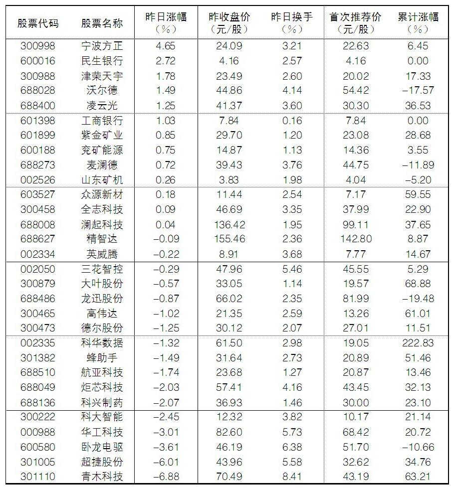 2025年10月23日“大眾30”成份股報告