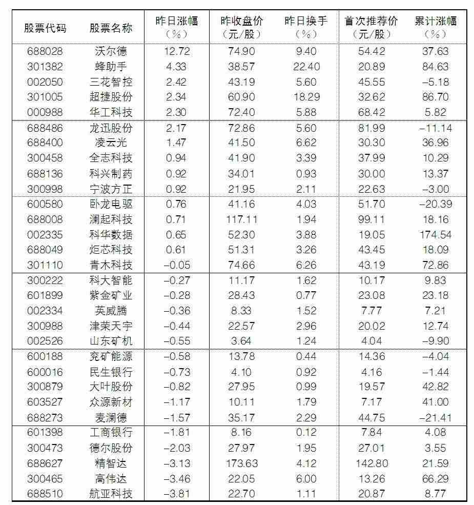 大眾30指數成份股中,26日漲幅前五位的分別是沃爾德、蜂助手、三花智控、超捷股份、華工科技,漲幅分別為12.72%、4.33%、2.42%、2.34%、2.30%;跌幅榜上,航亞科技、高偉達、精智達、德爾股份等跌幅居前。