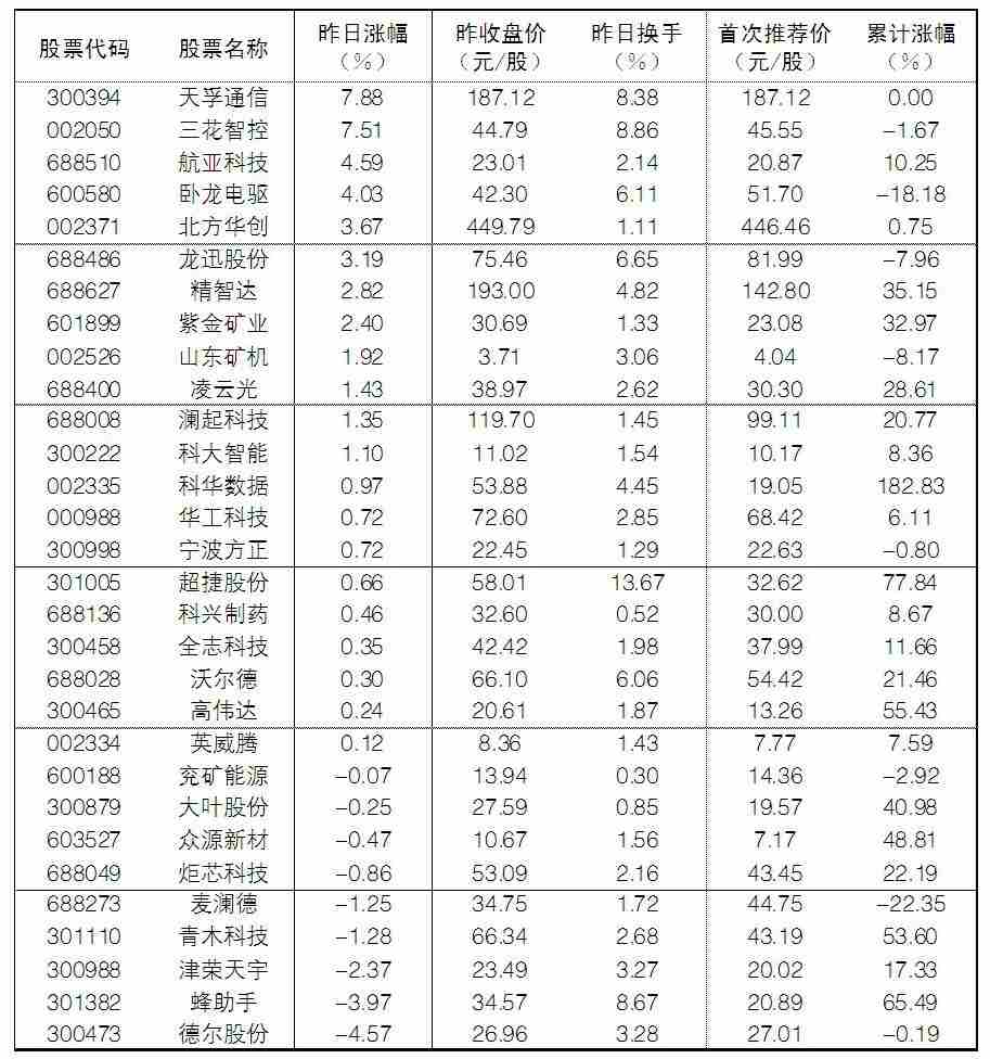 大眾30指數成份股中,4日漲幅前五位的分別是三花智控、航亞科技、臥龍電驅、北方華創、龍迅股份,漲幅分別為7.51%、4.59%、4.03%、3.67%、3.19%;跌幅榜上,德爾股份、蜂助手、津榮天宇等跌幅居前。